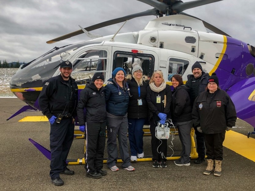 The EMTs, determined the incarcerated individual's condition warranted more specialized care than could be provided at the local hospital. They needed to life-flight the individual to St. Michael Medical Center in Silverdale. Arranging a life flight from a correctional facility presented unique challenges, including security concerns. Ultimately, Corrections Officer Tyler Bolewicki provided the required security on the helicopter, while Corrections Officer Matthew Cartmill followed in a vehicle, ensuring that the patients transfer happened smoothly.